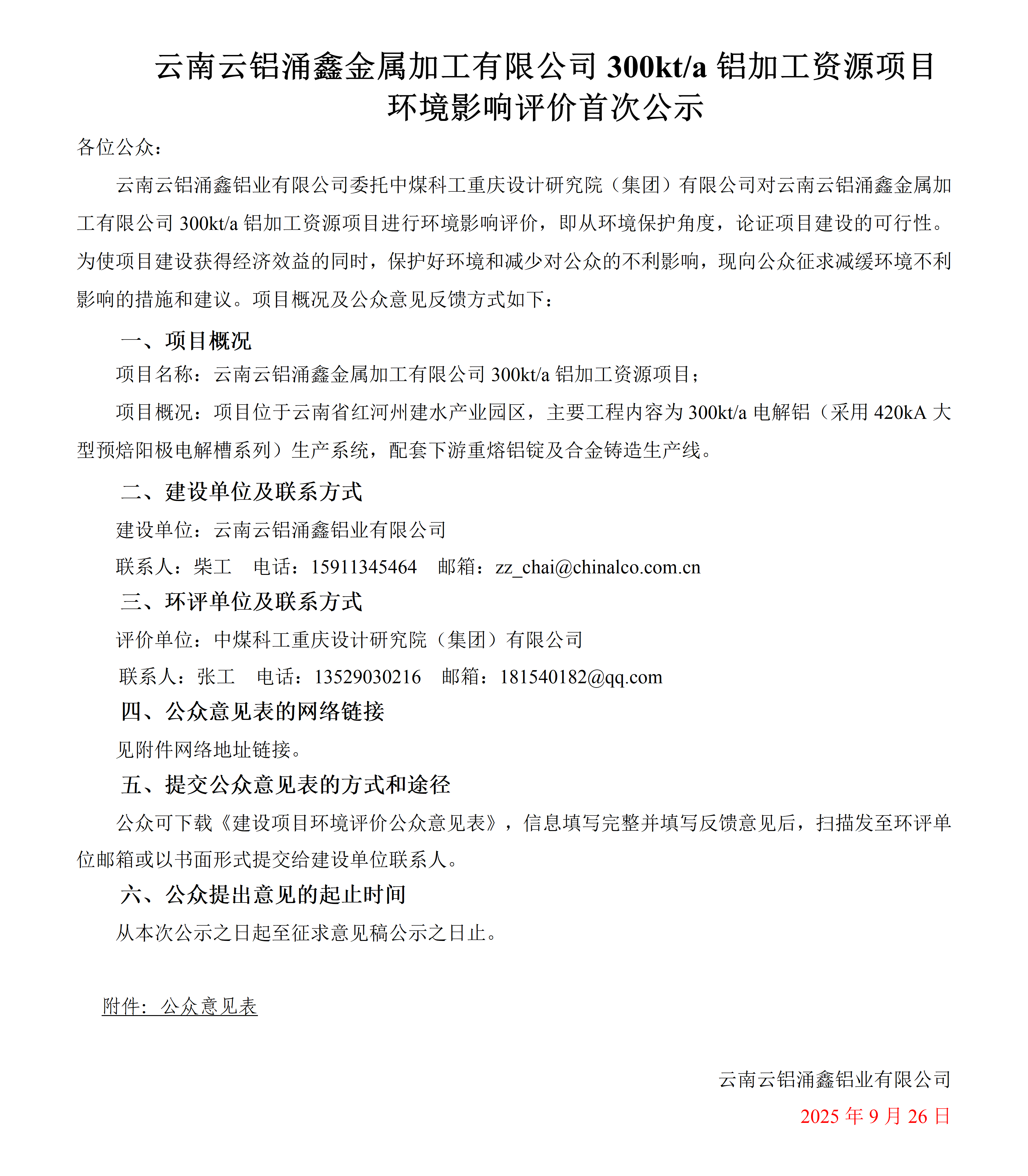附件:建设项目环境影响评价公众意见表(涌鑫).docx